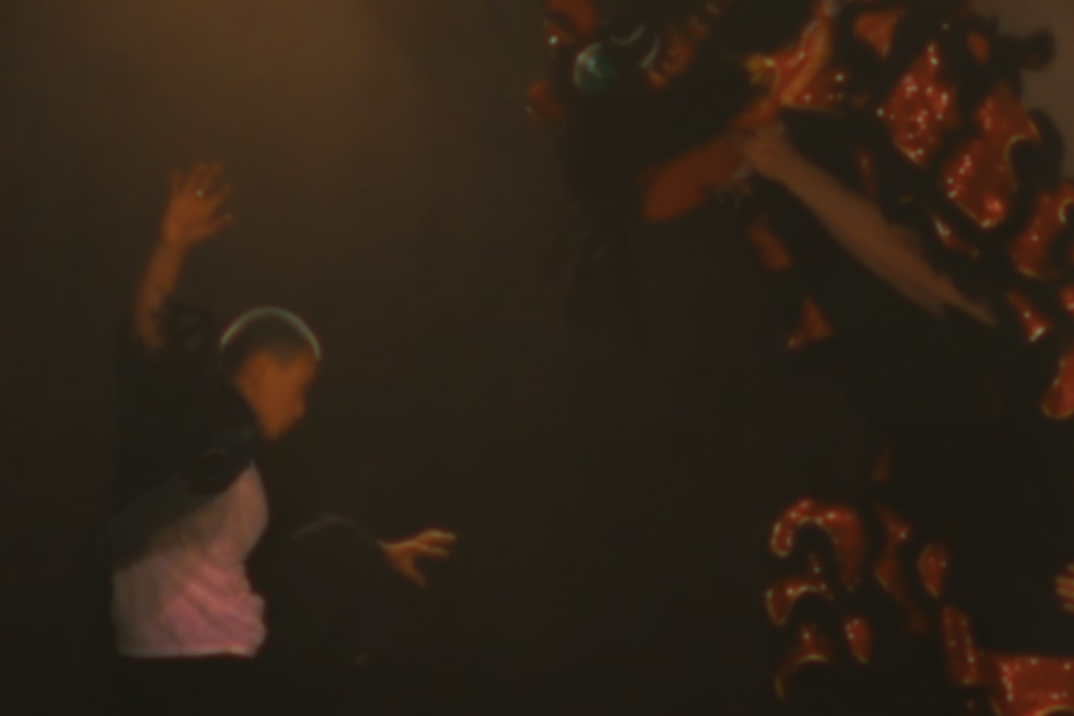 A martial arts inspired dance-fight between a lion dancer and queer performer reflecting the tension between traditional and modern identities in a dreamscape nightmare